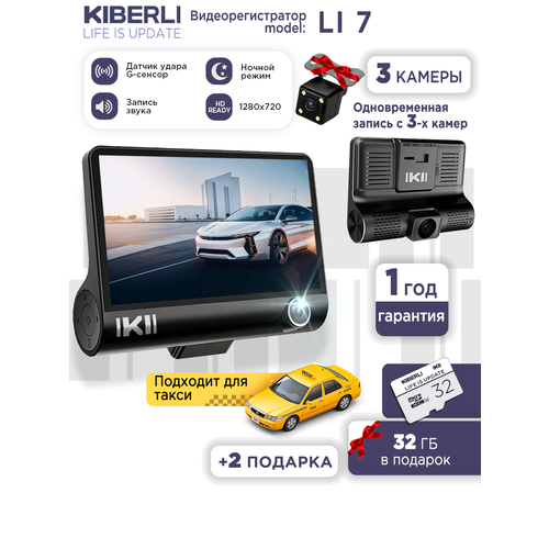 Автомобильный видеорегистратор KIBERLI LI 7 / 3 в 1 датчик движения G-сенсор, 3 камеры, 32 Гб 101964351879
