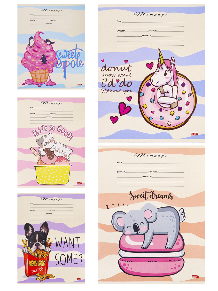 Тетрадь клетка Profit Зверушки и вкусности 12-4361 12 листов, 10 штук 600011904233