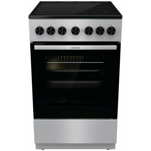 Плита электрическая Gorenje GEC5B41SG, стеклокерамическая, 4 зоны нагрева, духовка HomeMADE 62 л, 9 режимов приготовления, гриль с вентилятором, таймер, серый