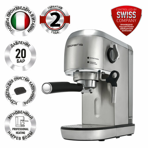 Кофеварка эспрессо Polaris PCM 1540 1400Вт нержавеющая сталь серебристый, черный