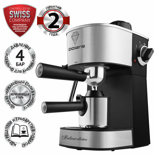 Кофеварка рожковая Polaris PCM 4011, черный/серебристый