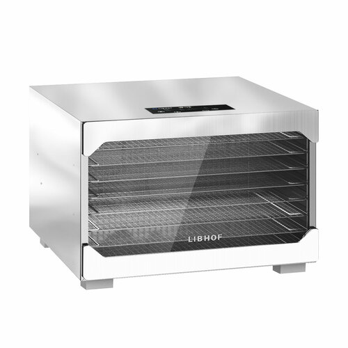 Libhof FDS-051 оснащен электронным управлением, таймером до 48 ч и дисплеем, на котором отображается текущая температура и время, что позволяет контролировать процесс сушки.