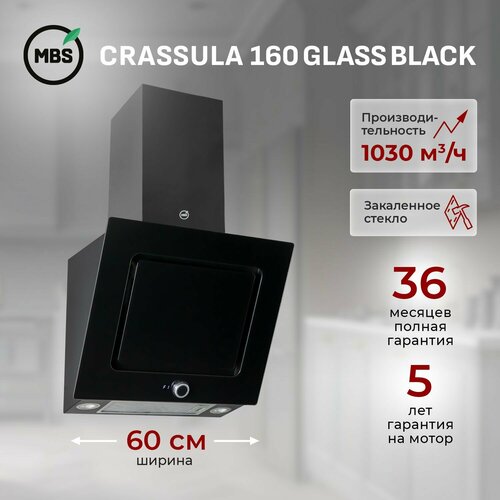 Купольная вытяжка MBS CRASSULA 160, корпуса glass black, окантовки/панели