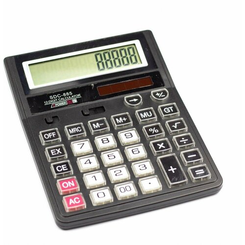 Калькулятор настольный 12 -разрядный SDC-885 190*148мм 2питания (черный корпус) (картонная упаковка) (32164)