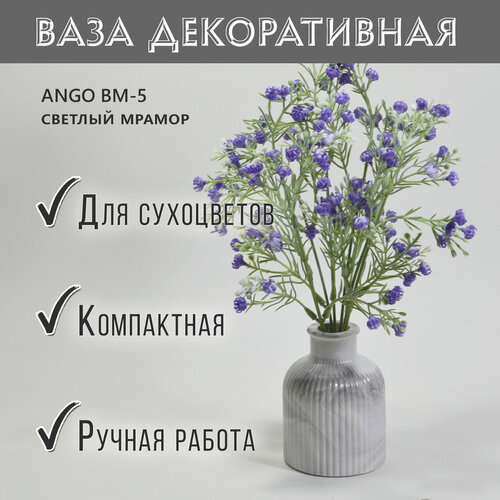 Ваза для сухоцветов, искуственных цветов ANGO ВМ-5, светлый мрамор