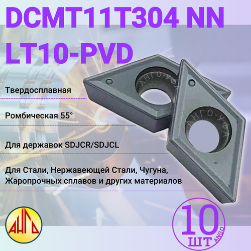 Пластина твердосплавная DCMT11T304 NN LT10-PVD / 10 штук / сменная Ромбическая 55 гр. по металлу