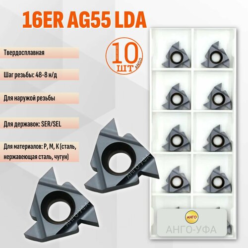 16ER AG55 LDA пластина резьбовая твердосплавная / 10 штук / Угол 55 градусов. ANGO-UFA