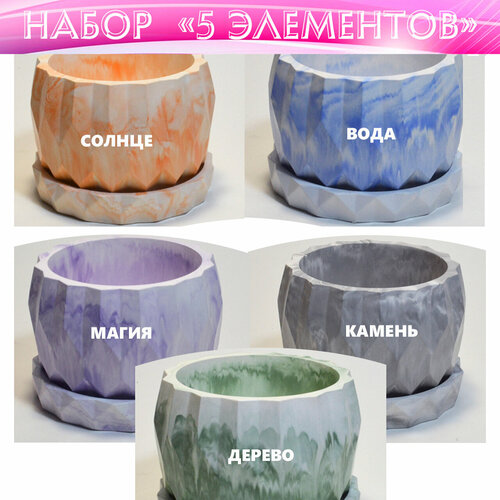 Кашпо набор для суккулентов, сухоцветов ANGO KM-4, 5 элементов