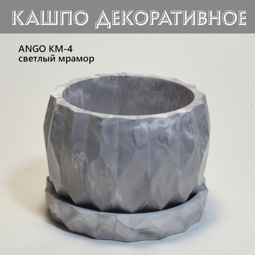 Кашпо для суккулентов, сухоцветов ANGO KM4 светлый мрамор, 0,2л, гипс