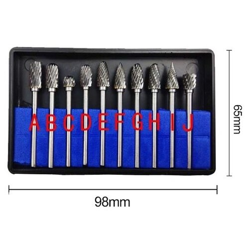 Набор Борфрез Твердосплавных по металлу 10 штук ф 6 мм Хвостовик 3 мм
