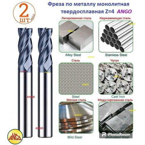 Фреза Твердосплавная Концевая / Набор 2 шт/ 8х20х8х60 мм Z4 металлу Монолитная HRC45 WC