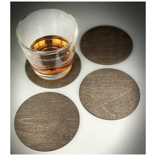 Artuniq Подставка под кружку, чашку из дерева сервировочная / Набор 4 шт / Диаметр - 95 мм / Толщина - 4 мм / Бирдекель "Венге"