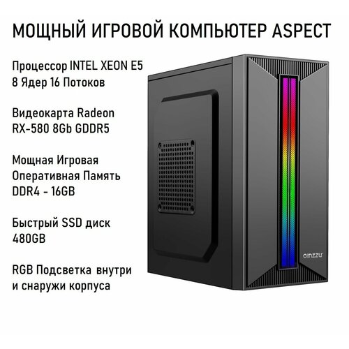 Мощный Игровой Компьютер ASPECT / Процессор Xeon E5 - 8 Ядер 16 Потоков / Игровая Видеокарта ATI Radeon RX560 8Gb GDDR5 / DDR4 - 16Gb / RGB Подсветка