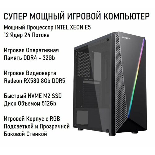 Мощный Игровой Компьютер ASPECT / Intel Xeon E5 - 12 Ядер 24 Потока / Игровая Видеокарта ATI Radeon RX580 8Gb GDDR5 / DDR4 - 32Gb / RGB / M2 SSD 512Gb