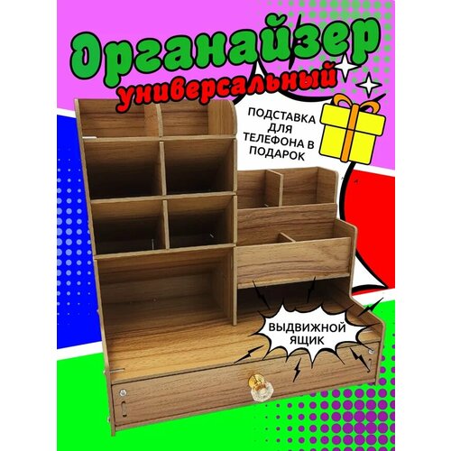 Органайзер для канцелярии настольный AXLER для ручек, карандашей и маркеров, подставка для косметики на стол с ящиком МДФ дерево