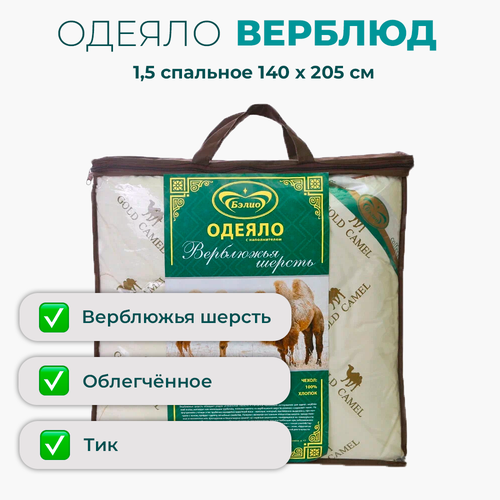 Одеяло Верблюд / одеяло из верблюжьей шерсти / 1,5 спальное облегченное 140*205 / Бэлио