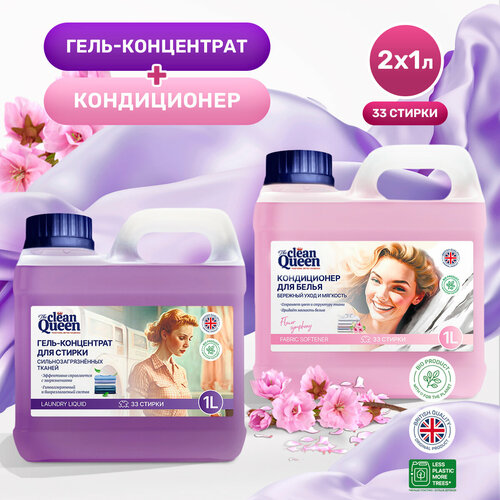 Гель для стирки CLEAN QUEEN Цветные Ткани 5 л + Кондиционер CLEAN QUEEN Цветочная Симфония 5 л