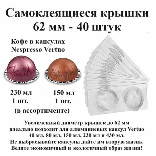 Капсулы Nespresso Vertuo 230 и 150 мл - 1 шт, крышки 62 мм - 40 шт.
