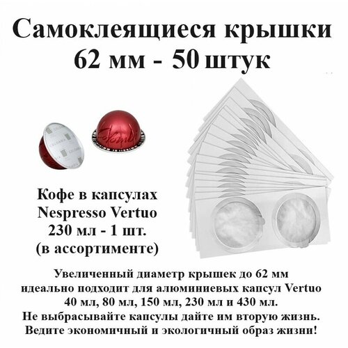 Капсулы Nespresso Vertuo 230 мл - 2 шт, крышки 62 мм - 50 шт.