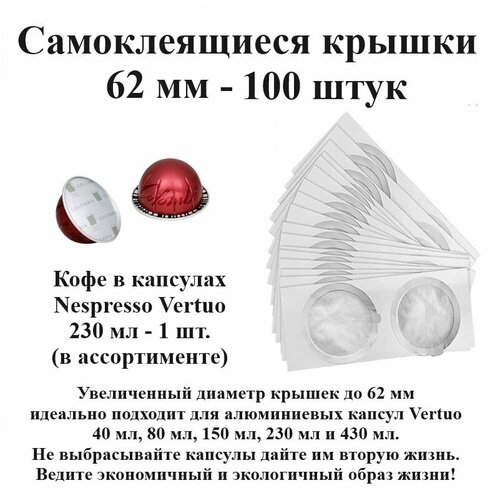 Капсулы Nespresso Vertuo 230 мл - 2 шт, крышки 62 мм - 100 шт.
