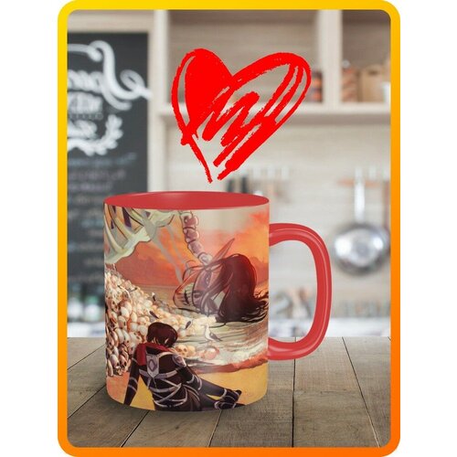 Кружка красная, аниме атака титанов - 17053
