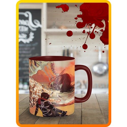 Кружка темно - красная, аниме атака титанов - 17034