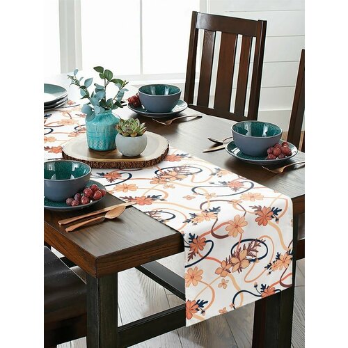 Дорожка на стол 40 х 180 см цветы и растения