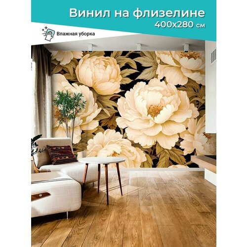Фотообои 4 х 2,8 м виниловые на флизелине Пионы