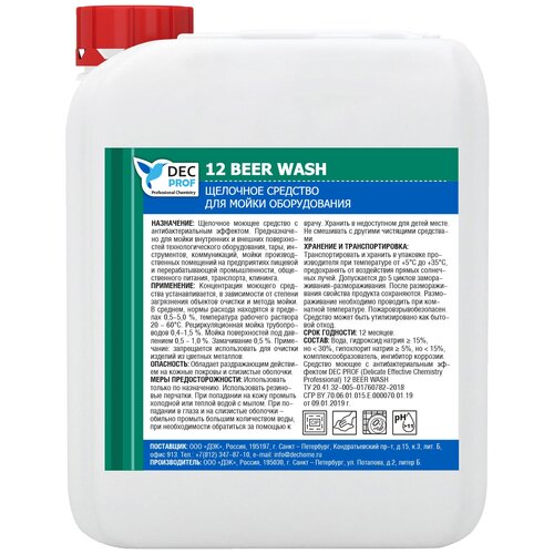 DEC PROF 12 BEER WASH Щелочное средство для мойки оборудования, концентрат, (5л)