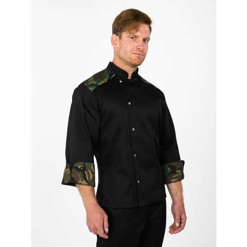 PR01Z Китель повара мужской зеленый камуфляж. Куртка поварская E-Chef.56р. Черный. Рукав 3/4
