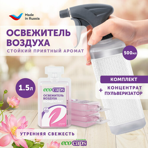 Освежитель воздуха для дома EcoCaps (концентрат для разведения водой) 3х50 мл + флакон, аромат Утренняя свежесть
