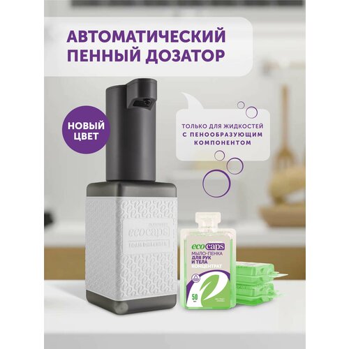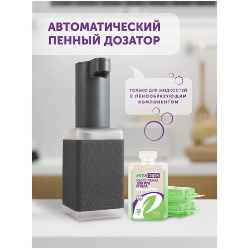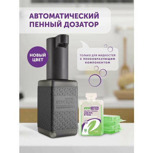 Автоматический пенный диспенсер, для мыла-пенки, в ванную и на кухню, Ecocaps, Экокапс, цвет Темно-серый