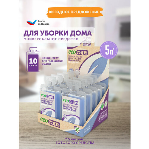 Комплект из 10 шт. концентратов по 50 мл для разведения водой, универсальное средство для уборки дома EcoCaps, с ароматом голубая орхидея
