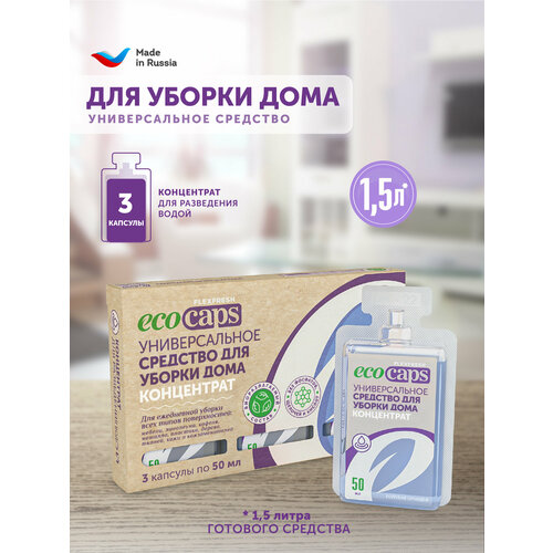 Комплект из 3-х шт. концентратов по 50 мл для разведения водой, универсальное средство для уборки дома EcoCaps, с ароматом голубая орхидея