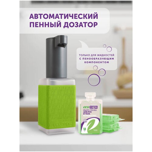 Автоматический пенный диспенсер, для мыла-пенки, в ванную и на кухню, Ecocaps, Экокапс, цвет Зеленый