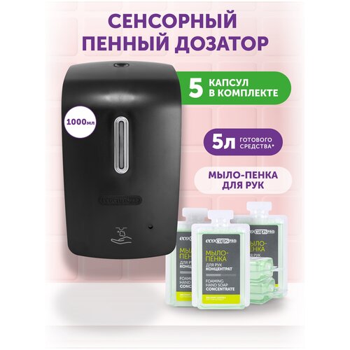 Настенный автоматический пенный диспенсер EcoCaps PRO + 5 капсул с концентратом жидкого мыла-пенки с ароматом хлопка