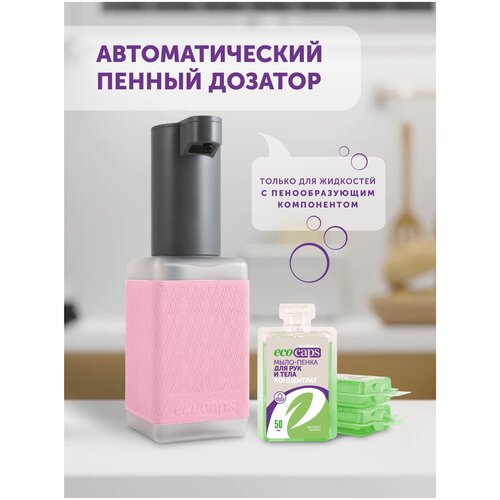 Автоматический пенный диспенсер, для мыла-пенки, в ванную и на кухню, Ecocaps, Экокапс, цвет Розовый
