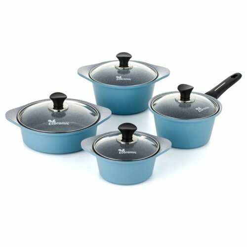 Набор посуды Ecoramic с каменным покрытием - голубой