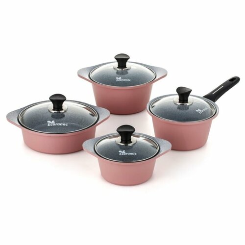Набор посуды Ecoramic с каменным покрытием - розовый
