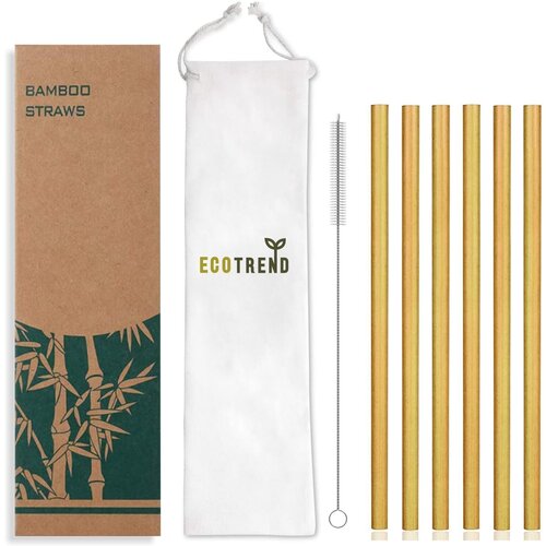 Многоразовые бамбуковые трубочки ECOTREND для напитков с чехлом для хранения и ершиком, 6 шт.