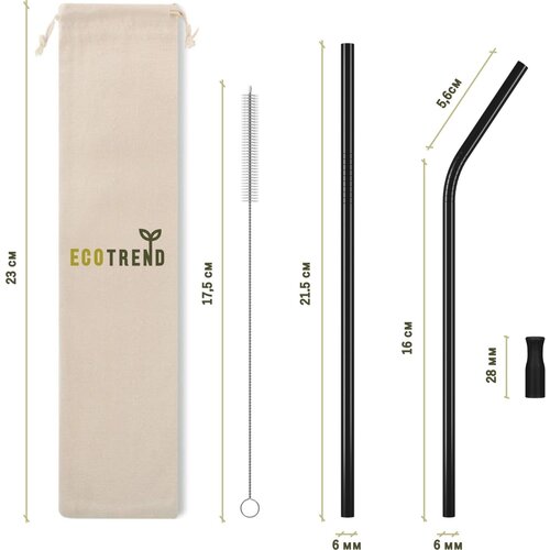 Многоразовые металлические трубочки EcoTrend для напитков с силиконовым наконечником и чехлом для хранения, черные