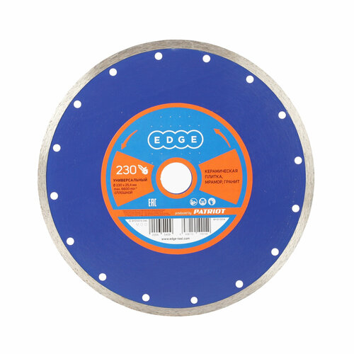 Диск алмазный EDGE by PATRIOT алмазный сплошной 230х25,4 универсальный