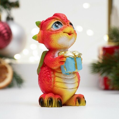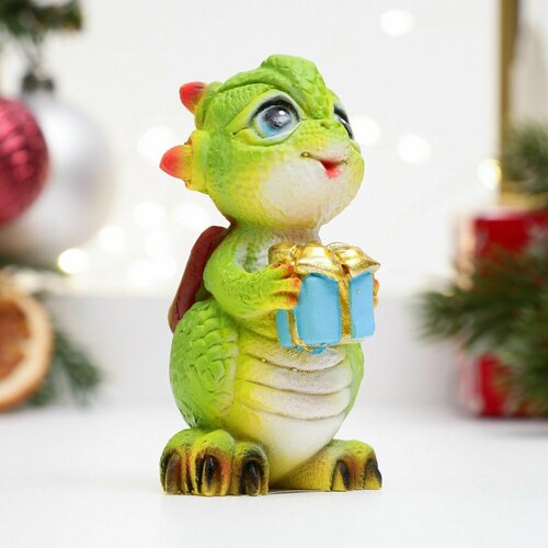 Фигурка Дракончик с подaрком 7,5*5*5см, символ года дракона 2024, статуэтка, подарок, сувенир на новый год