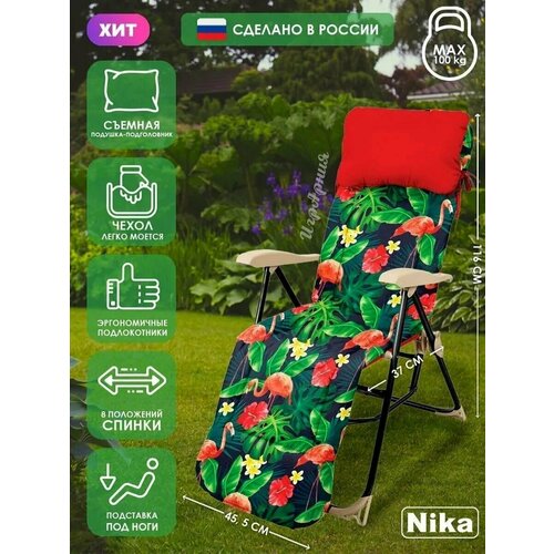 Кресло-шезлонг складное 109х46х40см с подставкой для ног для дачи, с подлокотниками, съемным подголовником, 8 положений спинки, стул пляжный
