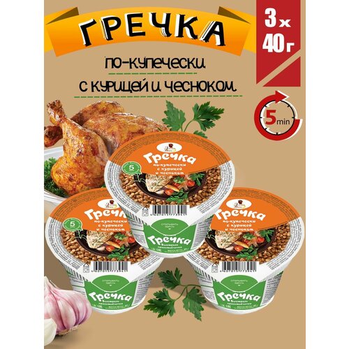 Каша в стакане "Гречка по купечески с курицей и чесноком" 3 шт. по 40г