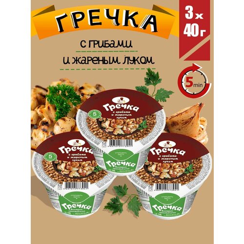 Каша в стакане "Гречка с грибами и жареным луком" 3 шт. по 40г