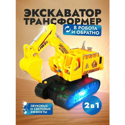 Игрушка экскаватор, робот трансформер музыкальный, для мальчиков, машинка грузовая пластиковая, игрушечная спецтехника