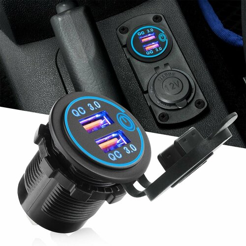 Разъем USB в авто врезной ElectroKot - розетка 2 USB QC3.0 быстрая зарядка синяя подсветка