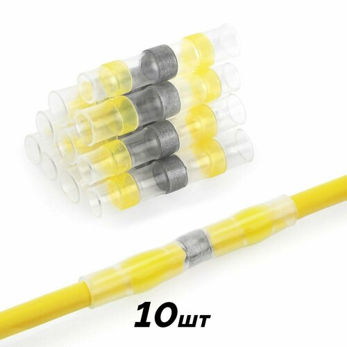 Трубка термоусадочная с припоем и клеем прозрачная для герметичного соединения проводов d 4,5 мм 10 шт