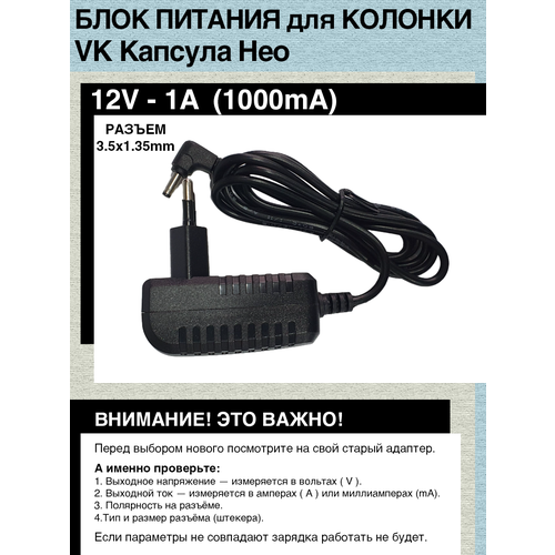 Адаптер блок питания зарядное устройство для колонки VK Капсула Нео 12V - 1A 3.5x1.35
